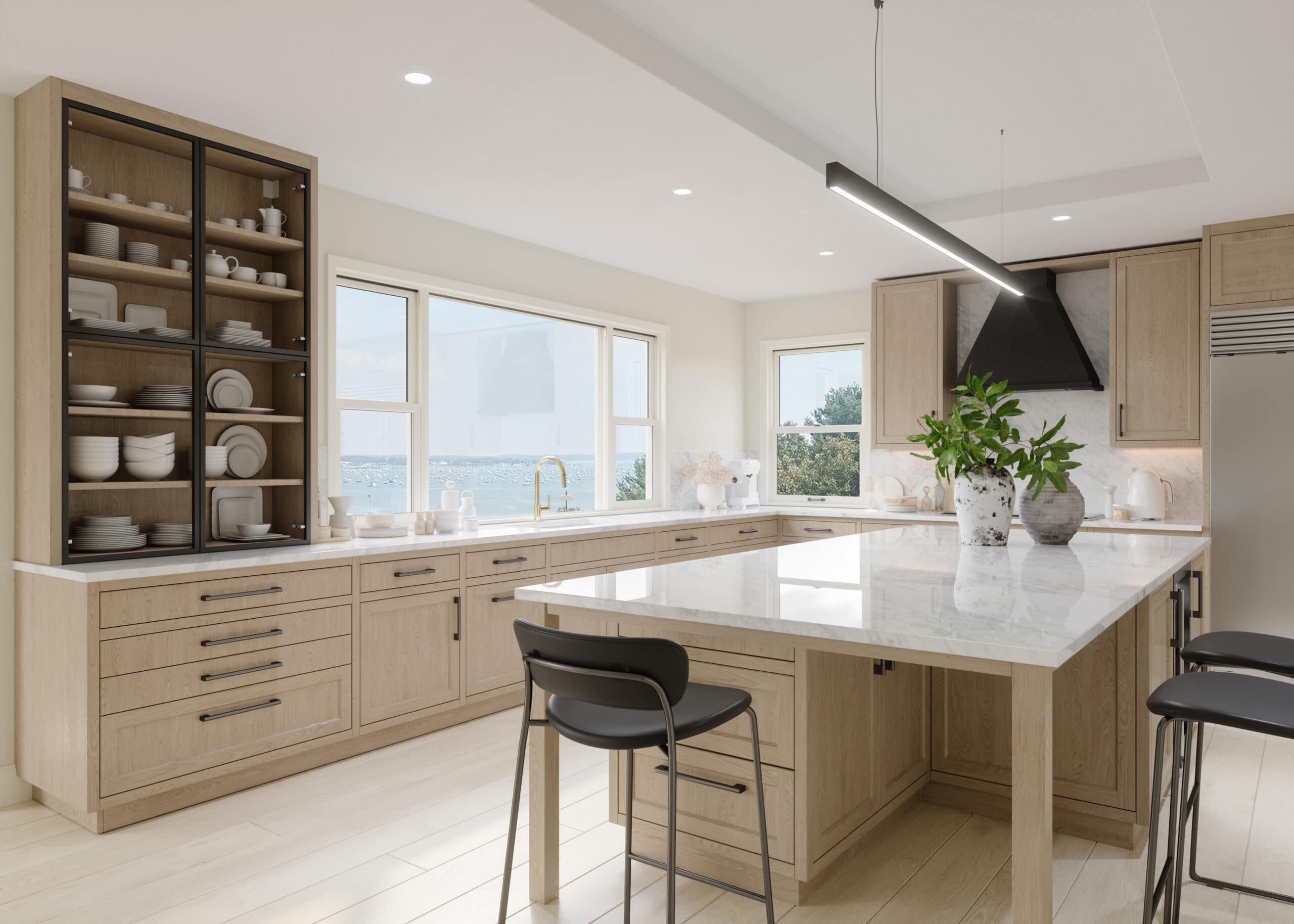 From the moment you enter, you’re greeted by sweeping ocean views from every floor, a reminder that the sea is not just your backdrop – it’s part of your everyday life. The chef’s kitchen, featuring Sub-Zero and Wolf appliances, an extended workstation sink, and custom cabinetry, is designed for both effortless entertaining and quiet mornings with coffee by the shore.